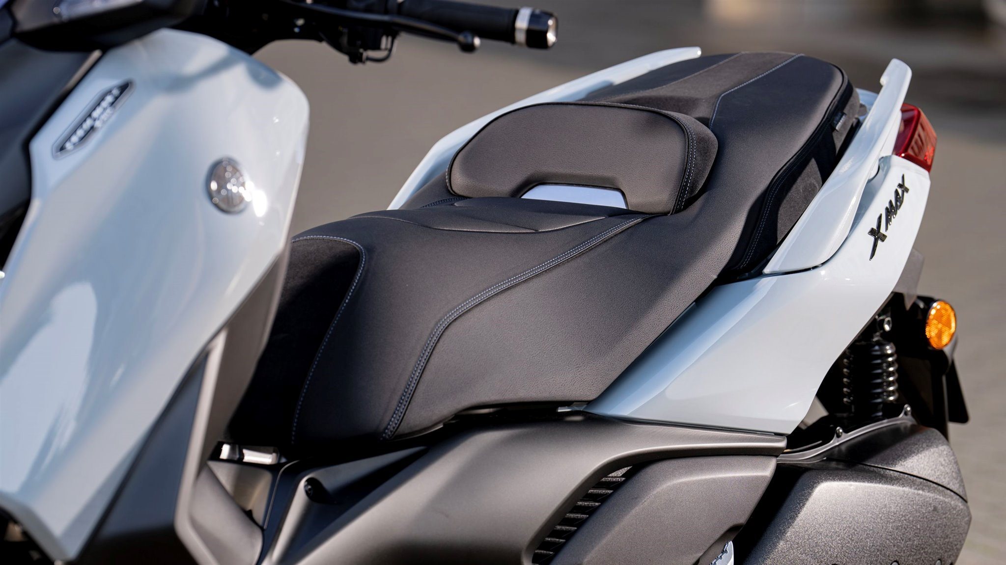 Für einen noch besseren Windschutz hat der XMAX 300 Tech MAX+ eine elektrisch einstellbare Verkleidungsscheibe. Sie lässt sich stufenlos um 95 mm variieren. Neu gestaltete Verkleidungen der Blinker vorn und der Frontspoiler verbessern die Aerodynamik. Zusammen mit dem einstellbaren Lenker und den geräumigen Trittbrettern ist es für XMAX 300 Tech MAX+ Fahrer einfach, seine ideale Sitzposition zu finden.